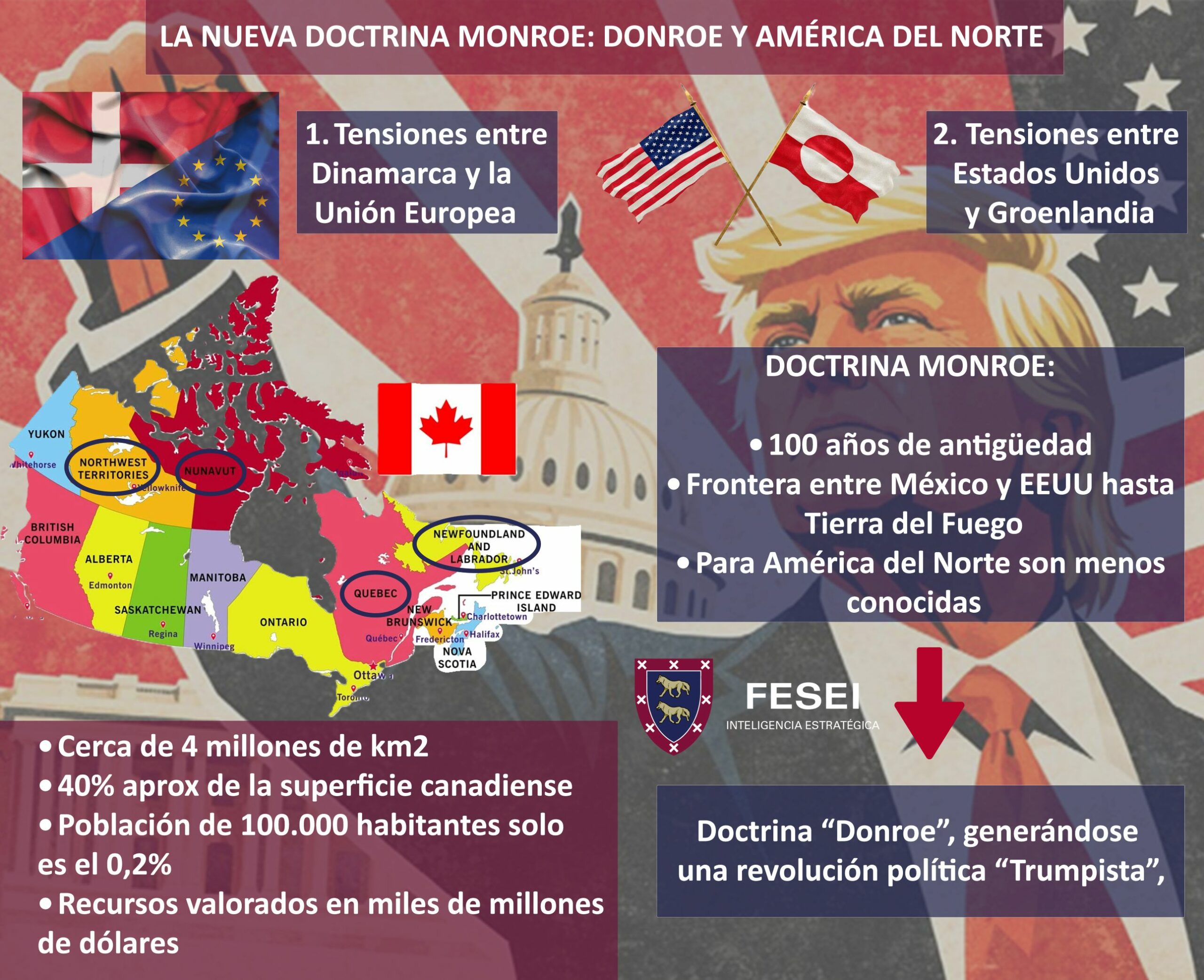 Sin duda, aunque la Doctrina Monroe ya tiene más de 100 años de antigüedad y mucho se ha hablado de su implementación desde la frontera entre México y EEUU hasta Tierra del Fuego, sus implicaciones para América del Norte son menos conocidas, creándose la doctrina: “Donroe”, generándose una revolución política “Trumpista”, reinterpretando la geoestrategia con una mezcla de ingredientes de presión militar, coerción económica y con la construcción de alianzas selectivas.