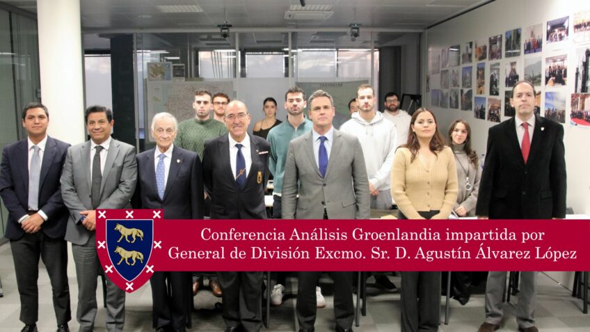 El General de División del Ejército del Aire Excmo. Sr. D. Agustín Álvarez López, experto en inteligencia militar, impartió el pasado 12 de febrero una conferencia en la Fundación de Estudios Estratégicos e Internacionales centrada en la creciente importancia geopolítica de Groenlandia, dentro de la formación a los futuros Oficiales Analistas de Inteligencia del Máster en Liderazgo, Diplomacia e Inteligencia con preparación diplomática y en Ciberinteligencia.