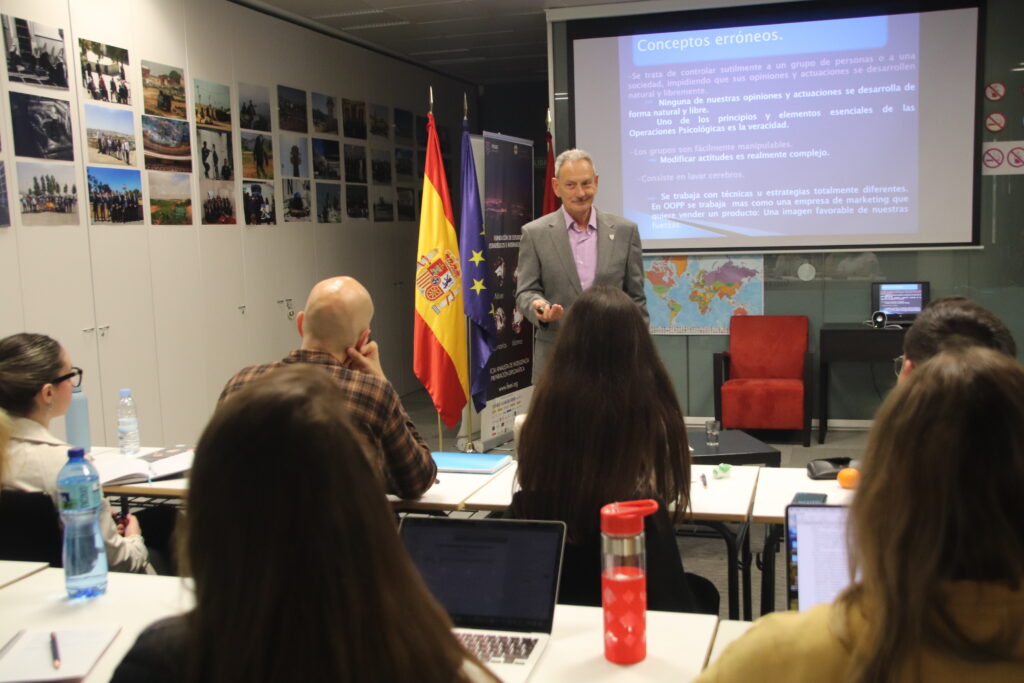 El Tcol. RSH impartió la segunda sesión de Inteligencia a los alumnos del Máster en Liderazgo, Diplomacia e Inteligencia. Oficial Analista de Inteligencia. Diploma Universitario de Experto en Ciberinteligencia. En esta ocasión, los alumnos profundizaron en los sesgos, prejuicios, cualidades del analista y otros conceptos básicos. También se completó el Ciclo de Inteligencia con la